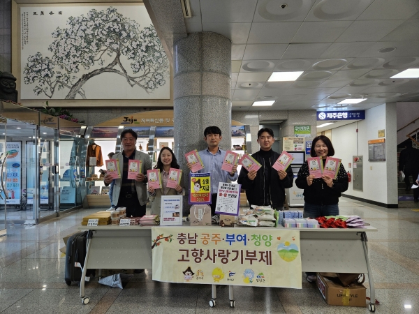 [충청뉴스큐] 청양군은 지난 7일 공주시와 부여군과 함께 제주특별자치도 서귀포시청을 방문해 고향사랑기부제 홍보전을 펼쳤다고 전했다.