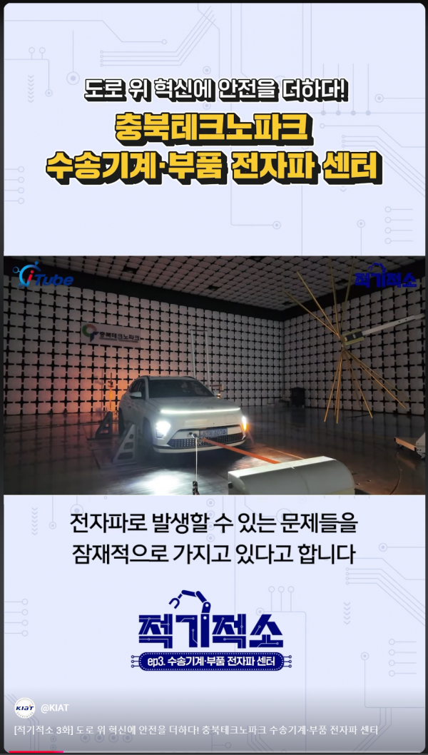 [충청뉴스큐] 미래차 전장부품에서 실차까지 전자파-전자기적합성의 시험, 인증, 평가를 수행하는 ‘수송기계 부품 전자파센터’ 가 올해 1월부터 서비스를 개시한 이래 충청권 자동차 산업의 구심점 역할을 해내고 있다.
