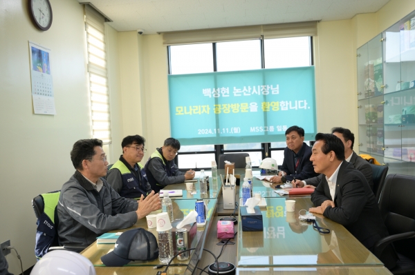 먼저 모나리자 논산공장을 방문한 백 시장은 인력 부족 문제 등의 어려움에 관해 듣고 “계속해서 논산의 가치를 키워나가며 젊은 층을 유입하고 인구 소멸 위기를 극복할 수 있는 길을 찾아나갈 것”이라고 말했다.