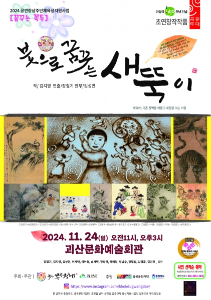 이번 창작공연은 그 대미를 장식하는 작품으로 오는 11월 24일 일요일 오전 11시와 오후 3시 두 차례 괴산문화예술회관 무대에 오른다.