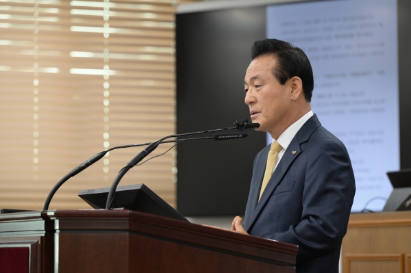 [충청뉴스큐] 백성현 논산시장이 3일 제261회 논산시의회 제2차 정례회 시정연설을 통해 “2024년은 역경 속에서도 기회를 쟁취하고 도약의 추진력을 높인 논산 재발견의 한 해”였다며 “다가올 2025년은 논산의 잠재력과 성장 가능성을 현실로 이뤄내는 한 해”가 될 것이라고 말했다.