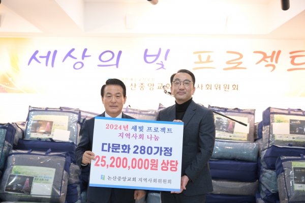 논산중앙장로교회에서는 지난 2023년에도 취암·부창동에 거주하는 결혼이민자 가정 210가구에 이불을 전달한 바 있으며 올해는 13개 읍·면에 거주하는 280가구에 이불을 기탁하며 추운 겨울 이웃을 향한 따뜻한 사랑을 전했다.