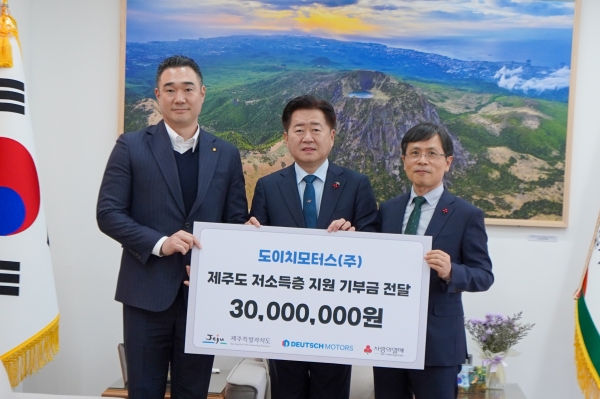 [충청뉴스큐] 제주특별자치도는 도이치모터스㈜가 설 명절을 맞아 취약계층을 위한 성금 3,000만원을 전달했다고 밝혔다.