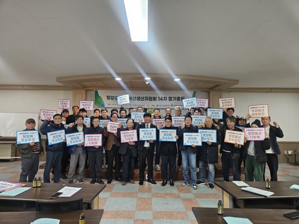 [충청뉴스큐] 청양군 표고버섯생산자협회는 지난 13일 청양군산림조합 대회의실에서 청양군 산림자원과장, 청양군 산림조합장, 표고버섯생산자협회 회원 등 60여명이 참석한 가운데 2025년 정기총회를 개최했다.