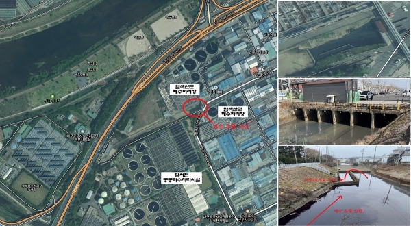 3개 기관 공동대응반은 지난 24일 발생한 붉은색 염색 폐수 유출에 대응해 공단 내 주요 우수 및 오수 맨홀을 개방해 폐수를 무단 방류하는 지점을 역추적하는 방식으로 의심 사업장을 선정하고 추적제 투입과 법 위반 여부를 점검했다.