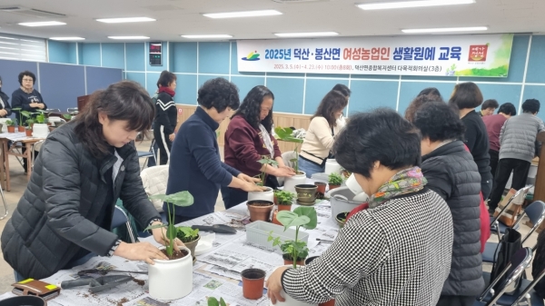 [충청뉴스큐] 예산군농업기술센터는 지난 5일 덕산면종합복지센터 다목적회의실에서 덕산·봉산면 여성농업인을 대상으로 생활원예 교육을 추진했다.