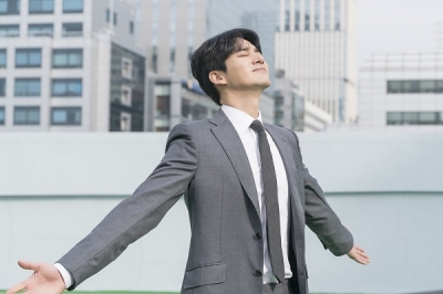 공개된 사진 속 김유월은 고층빌딩이 빽빽이 들어서 있는 도시 한 가운데 자리한 양지그룹의 옥상에서 눈을 감고 두 팔을 벌린 채 공기를 마음껏 들이 키고 있다. 조각 외모에 그레이 슈트를 입고 드넓은 가슴을 벌려 마치 세상을 다 가진 듯한 그의 모습이 시선을 강탈한다.