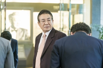 공개된 사진 속에는 수많은 사람의 인사를 받으며 양지그룹 로비로 들어오는 장회장의 모습과 그에게 90도 칼각으로 인사를 하는 사위 최태준의 모습이 담겨있다. 흐트러짐을 절대로 용납하지 않을 것 같은 장회장의 카리스마가 시선을 강탈하는 가운데, 조금은 어리숙해 보이는 사위 최태준이 장회장을 벗어나 옥상에서 또 다른 분위기를 풍기고 있어 눈길을 끈다.