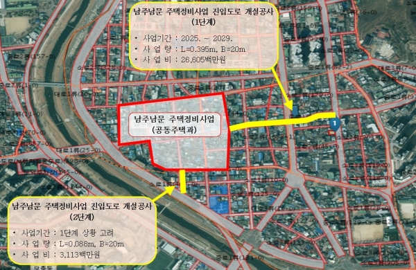 시는 남주·남문 주택정비사업 진입도로 개설을 통해 인근 주택정비사업으로 인한 인구 증가에 대비하고 도로축 정립으로 인프라를 재정비해 원도심 활성화의 발판을 마련할 방침이다.
