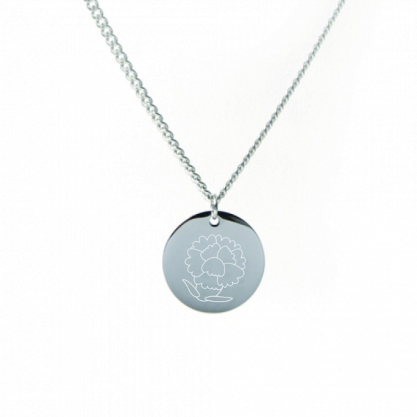 각인목걸이 앞면은 카네이션 꽃 문양을 넣어 치매환자에 대한 존중과 사랑의 의미를 더했다.