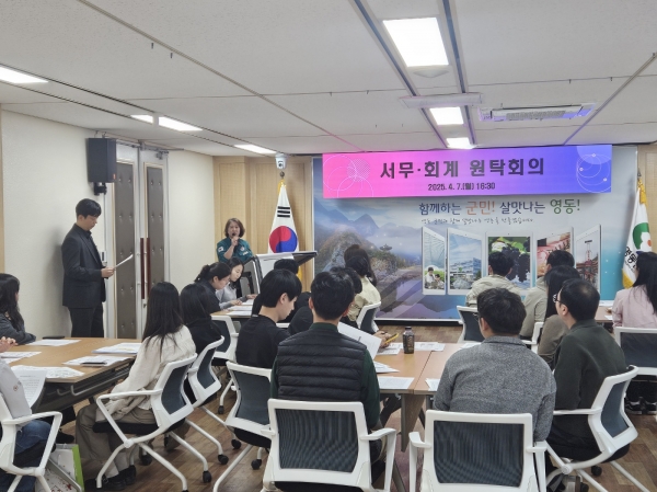 군은 지난 7일 군청 소회의실에서 서무·회계 담당자 30여명이 참석한 가운데 회의를 개최하고 실무 중심의 정보 공유와 소통에 나섰다.