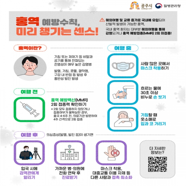 [충청뉴스큐] 공주시는 봄철을 맞아 학령기 아동·청소년을 중심으로 홍역, 수두 등 호흡기 감염병의 유행이 우려된다며 시민들에게 철저한 예방수칙 실천을 당부했다.