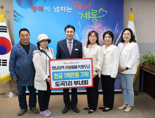 [충청뉴스큐] 계룡시는 관내 엄사면 도곡1리 부녀회에서 산불 피해 복구에 써달라며 현금 100만원을 기탁해 왔다고 밝혔다.