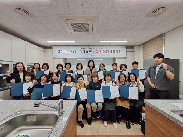 교육은 에스프레소, 카푸치노, 카라멜 마끼아또, 라떼아트 등 커피 이론과 실습을 병행했으며 수료생 20명 중 18명이 자격증을 취득하는 성과를 거뒀다.