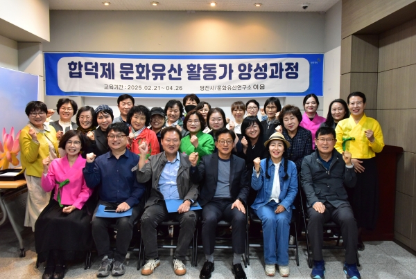 [충청뉴스큐] 당진시는 지역주민의 지역 문화유산 행사 운영 요원 참여 및 주민 참여 강화 콘텐츠 활용을 위해 합덕수리민속박물관에서 ‘합덕제 문화유산 활동가 양성과정’을 운영하고 4월 25일 수료식을 가졌다고 29일 밝혔다.