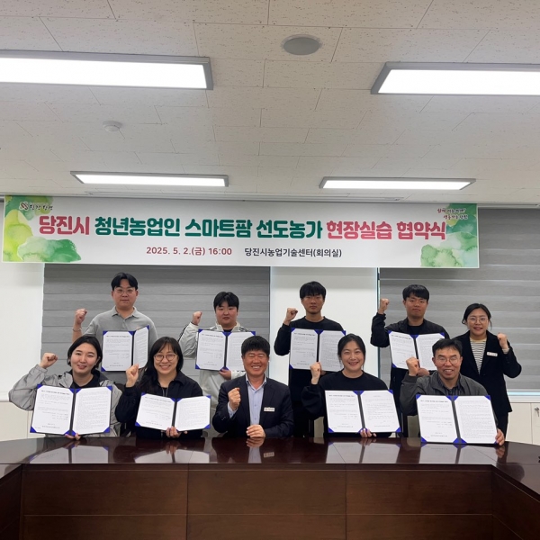 [충청뉴스큐] 당진시농업기술센터는 지난 2일 스마트팜 청년창업 인재 양성을 위해 선도 농가와 교육생 간 현장실습 협약식을 추진했다고 7일 밝혔다.
