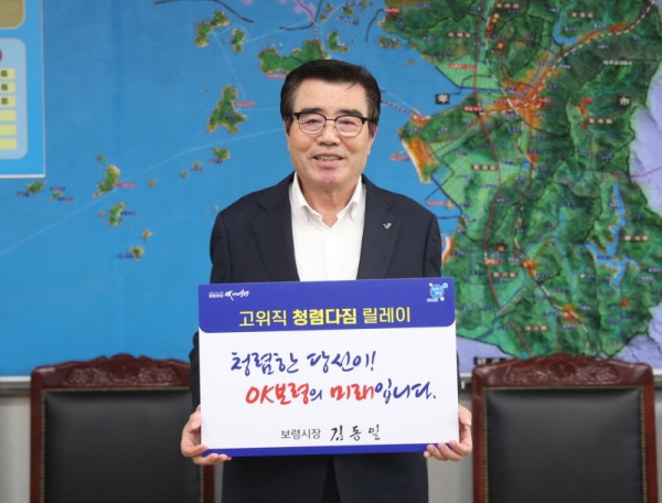 [충청뉴스큐] 보령시는 청렴한 공직문화 조성을 위해 김동일 시장을 시작으로 오는 12월까지 ‘고위직 청렴다짐 릴레이’를 실시한다.