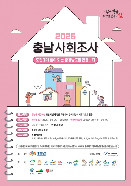 이번 사회조사 결과는 오는 12월에 공표되며 ‘2025년 충청남도 사회지표 보고서’로 발간될 예정이다.