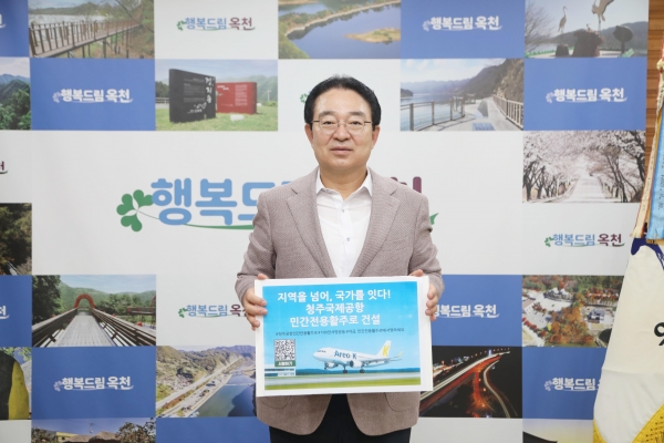 옥천은 중부내륙고속도로 경부선 철도 등 주요 교통망이 교차하는 지점으로 청주공항과 연계될 때 남부권 전체를 아우르는 실질적 연결축이 될 수 있다”며“군민 여러분께서도 서명에 동참하셔서 옥천군의 미래를 함께 만들어가길 희망한다”고 말했다.
