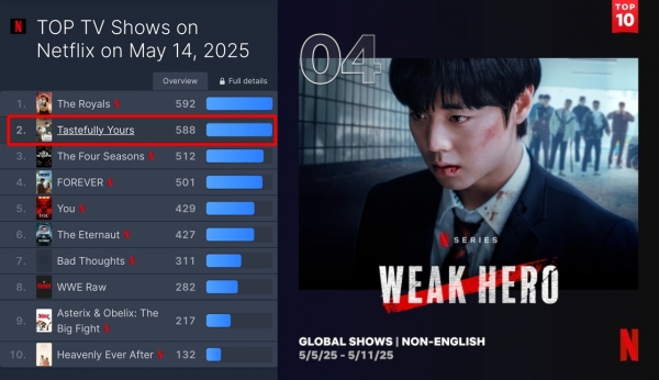 2회 공개 직후인 15일 '오늘 대한민국의 TOP 10 시리즈' 1위를 차지하며 흥행 파워를 입증하고 있는 것.또한 지난달 25일 공개된 넷플릭스 시리즈 '약한영웅 Class 2' 역시 공개 첫 주 동안 610만 시청수를 기록, 글로벌 TOP 10 시리즈 부문 1위를 차지했고 2주 차에는 640만 뷰를 기록하며 2위에 올랐다.