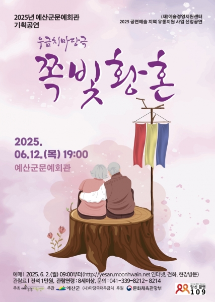 [충청뉴스큐] 예산군문예회관은 예술경영지원센터의 ‘2025 공연예술 유통지원 사업’ 공모에 선정된 작품 중 두 번째 공연으로 마당극 ‘쪽빛황혼’을 선보이며 관객들에게 특별한 문화체험을 제공한다.