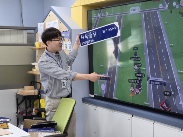 이번 교육은 초등생 3~6학년 대상으로 메타버스 플랫폼 기반 디지털 교과서 ‘플레이스비’를 활용해 도로명주소 교육을 진행했다.