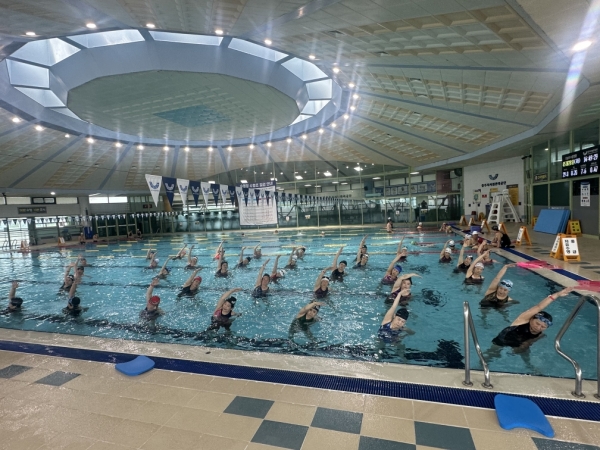 지난해 보건소가 추진한 수중운동교실 프로그램 결과에 따르면 참가자들은 평균적으로 △체지방률 36.1% → 35.5% 감소 △각근력 24.9kg → 25.7kg 증가 △걷기 실천일 2.9일 → 4.0일 증가 등 뛰어난 개선 효과를 보이며 참여자들의 큰 호응을 보였다.