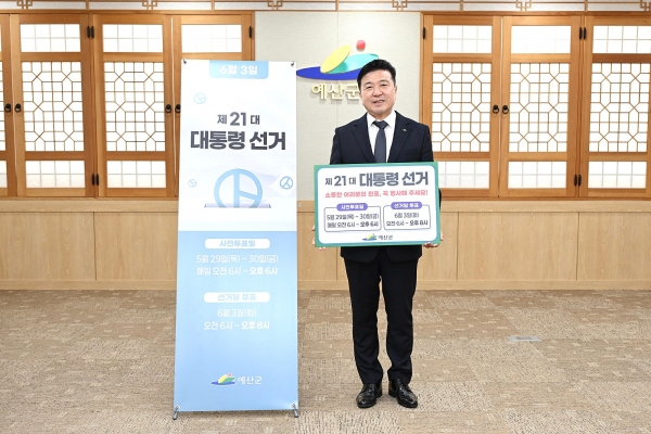 [충청뉴스큐] 예산군은 최재구 예산군수가 제21대 대통령선거를 앞두고 충청남도 시군 단체장들이 함께하는 ‘투표 독려 릴레이 캠페인’에 참여했다고 밝혔다.