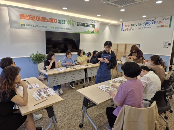 [충청뉴스큐] 홍성군은 지난 28일 이동노동자 쉼터 ‘쉬슈’에서 이동노동자들의 스트레스 해소와 심신 회복을 돕기 위한 특별한 힐링 프로그램을 운영했다고 밝혔다.
