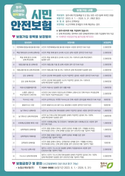 [충청뉴스큐] 청주시가 전 시민을 대상으로 가입한 단체보험인 시민안전보험의 보장 폭이 넓어진다.