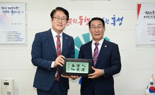 군에 따르면 지난 2일 군청 군수실에서 진행된 이번 만남에서 성낙준 혈액원장은 이용록 군수에게 홍성군의 헌혈 장려사업에 대한 꾸준하고 적극적인 지원에 감사의 마음을 담아 적십자 기념패를 전달했다.