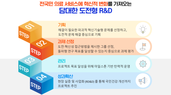 ‘한국형 ARPA-H 프로젝트’는 담대한 도전을 통해 국가 난제를 해결하고 의료·건강 서비스의 혁신적 변화를 가져오는 국민 체감형 연구개발 사업이다.