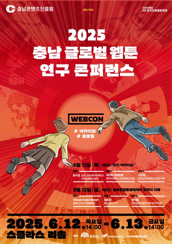 이번 행사는 충청남도의 웹툰 산업 발전과 국제 학술교류를 위한 자리로 문화체육관광부와 만화웹툰협회총연합 등 10개 기관이 참여하며 일본·말레이시아 등 해외 전문가와 전국 20개 대학교 관련 학과 대학원생 등 약 200명이 참석할 예정이다.