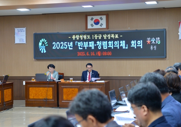 [충청뉴스큐] 홍성군은 올해 종합청렴도 1등급 달성을 목표로 지난 16일 군수가 직접 주관하는 2025년도 ‘반부패·청렴 회의체’ 회의를 개최했다고 밝혔다.