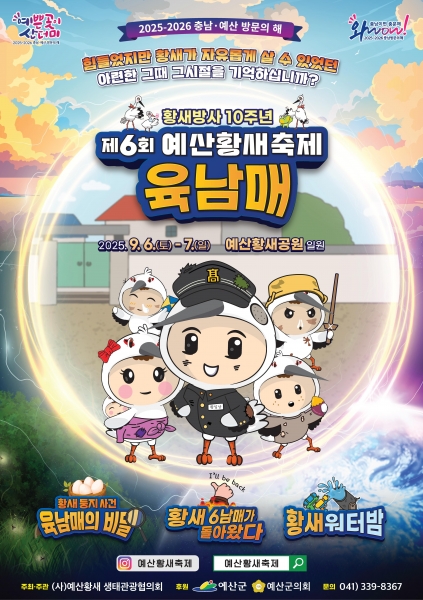 [충청뉴스큐] 예산군은 오는 9월 6일부터 7일까지 이틀간 예산황새공원 일원에서 열리는 ‘2025년 제6회 예산 황새축제’의 민간 주관단체로 예산황새생태관광협의회를 최종 선정했다고 밝혔다.