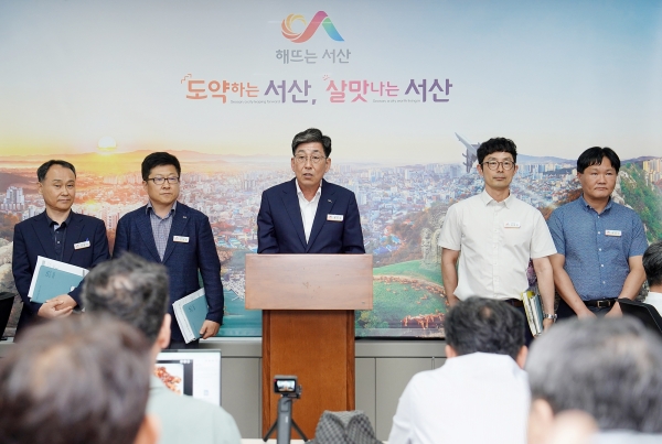 최신득 서산시 환경녹지국장은 9일 시청 브리핑룸에서 기자회견을 열고 “잠홍저수지의 수질개선과 함께, 시민에게 생태와 경관, 힐링의 삼박자를 갖춘 명품 호수를 제공하겠다”고 밝혔다.