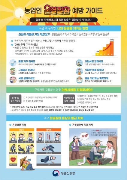 시민 행동수칙으로는 △폭염 시간대에는 야외활동 및 농작업 자제 △농작업 시 충분한 수분 보충 및 휴식 등이다.