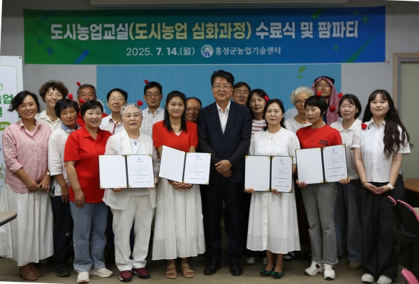 [충청뉴스큐] 홍성군농업기술센터은 지난 14일 도시농업 심화과정 수료식을 개최하고 17명의 수료생이 전문성과 현장 실무역량을 갖춘 도시농업 리더로 거듭났다고 밝혔다.