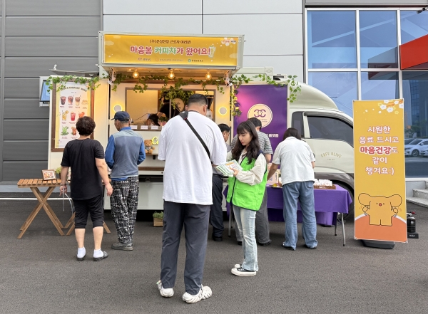이번 힐링프로그램에서는 사업장 내에 커피차를 배치해 직원들에게 무료 음료와 짧은 휴식을 제공함으로써 심리적 안정을 돕고 정서적 피로를 해소할 수 있는 시간을 마련했다.