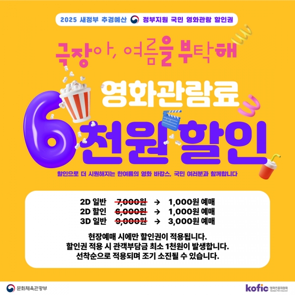 이에 따라 군은 7월 25일부터 10월 31일까지 향수시네마를 방문하는 선착순 3,500명을 대상으로 관람료 할인 혜택을 제공한다.