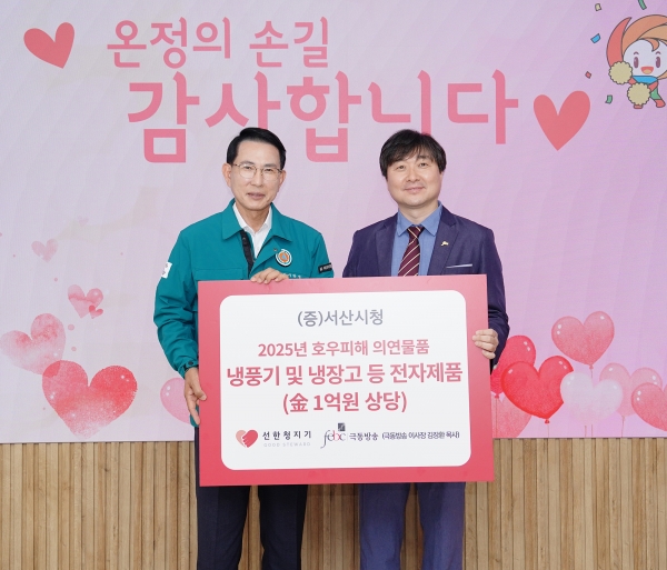 [충청뉴스큐] 충남 서산시는 선한청지기와 극동방송이 총 1억원 상당의 냉풍기와 가전제품을 집중호우 피해 구호 물품으로 기탁했다고 밝혔다.