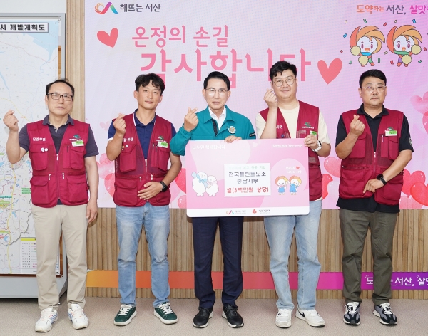 이완섭 서산시장은 “집중호우 피해를 본 이웃에 대한 나눔을 실천해 주신 전국플랜트노조 충남지부에 감사의 말씀을 드린다”고 말했다.