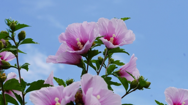 수목원 입구부터 흰색, 분홍색 등 다양한 색감의 무궁화들이 방문객을 맞이하고 있다.