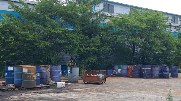 시는 지난 7월 15일 음암면 신장리에 있는 폐공장 내외부에 폐유, 철 스크랩 등 오염물질이 담긴 드럼통 수십 개가 방치된 것을 발견했다.