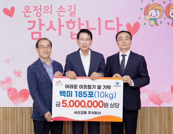 [충청뉴스큐] 충남 서산시는 13일 서산교통㈜이 어려운 이웃을 돕기 위한 5백만원 상당의 쌀 1천850㎏을 기탁했다고 밝혔다.