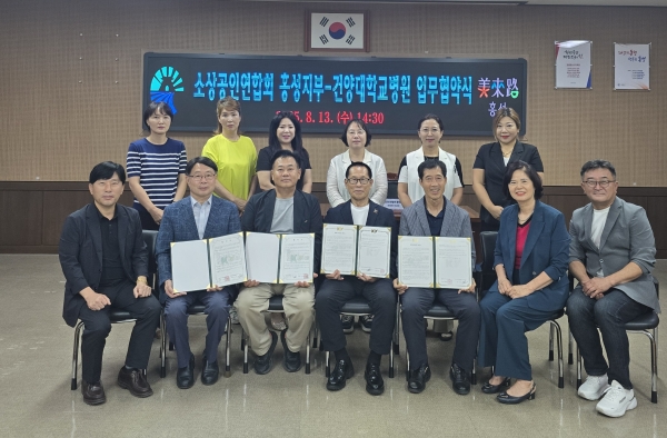 이날 업무협약식에는 소상공인연합회 홍성지부 주남수 회장 및 임원, 조세제 충청남도소상공인연합회장, 건양대학교 김기복 건강증진과장, 홍성군 황선돈 경제정책과장 등 20여명이 참석했다.