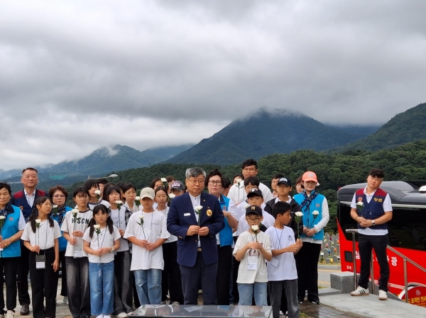 [충청뉴스큐] 보령시 재향군인회와 대천애육원 학생 등 45명이 26일 국립대전현충원에서 ‘국가 및 사회 희생 공헌 추모행사’를 가졌다.