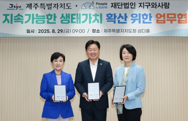 [충청뉴스큐] 제주특별자치도가 생태문명을 지향하며 생태가치 확산에 앞장서는 재단법인 ‘지구와사람’과 손잡고 글로벌 생태 협력 중심지로 도약해 나갈 방침이다.