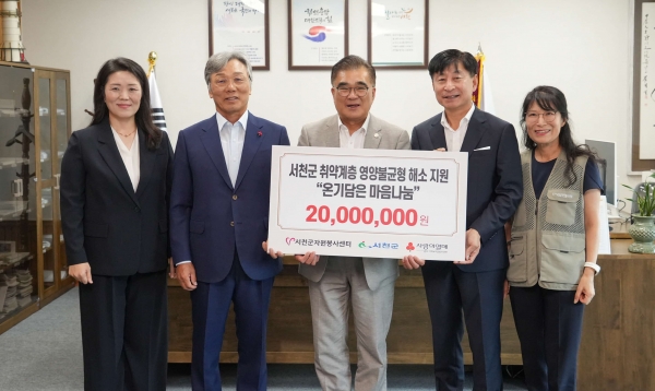 [충청뉴스큐] 서천군은 지난 5일 군수집무실에서 충남사회복지공동모금회 연중캠페인 최우수 시군 선정에 따라 기획사업비 2천만원을 배분받아 전달식을 진행했다.