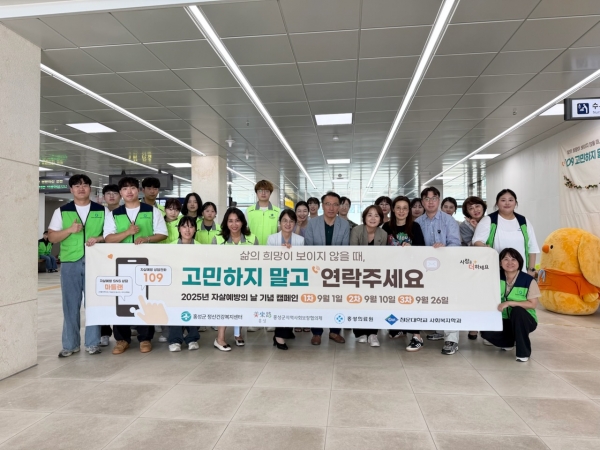 특히 홍성역에서는 온라인 QR코드를 활용한 우울증 검사와 기념사진 촬영이 가능한 포토부스를 운영했으며 충남도 정신건강 공동브랜드 캐릭터 ‘코음이’ 인형탈 홍보가 참여자들의 관심을 끌었다.
